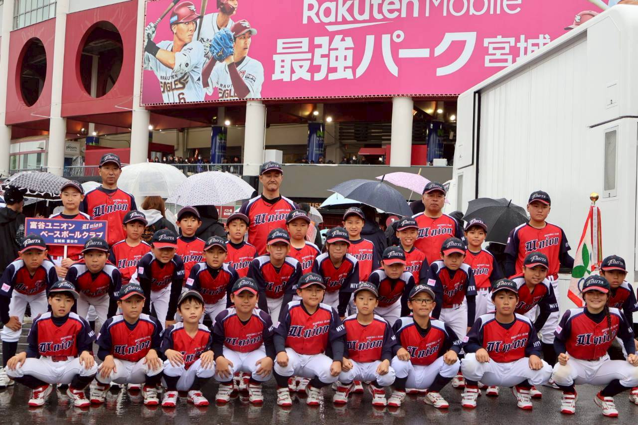 毎年恒例、楽天の本拠地(楽天モバイルパーク宮城)で行われる入場行進。 富谷ユニオンベースボールクラブは、一昨年、昨年と高橋さんのご指導のもと、2年連続で「更新賞」を獲得してきました。